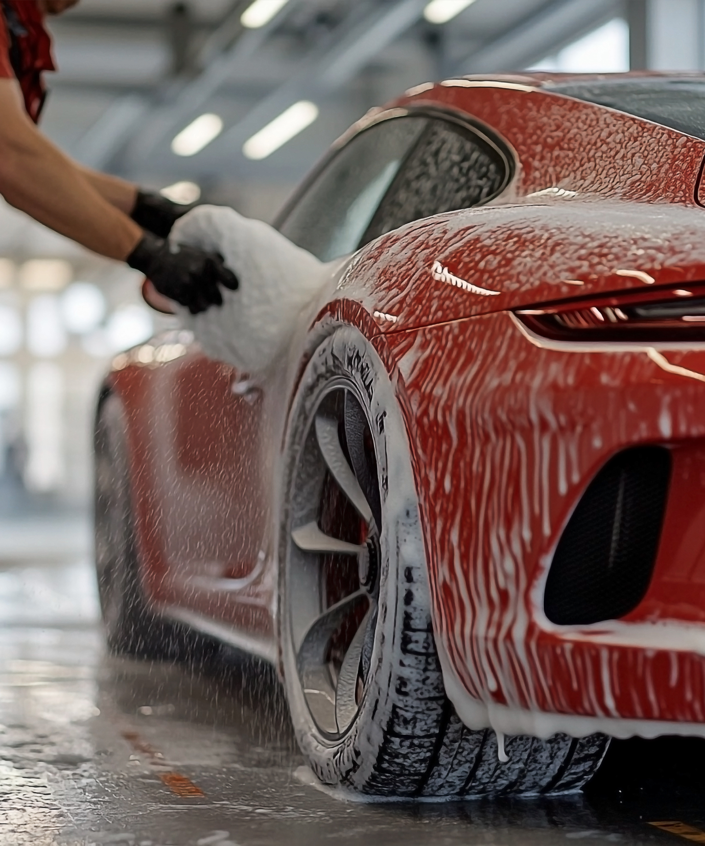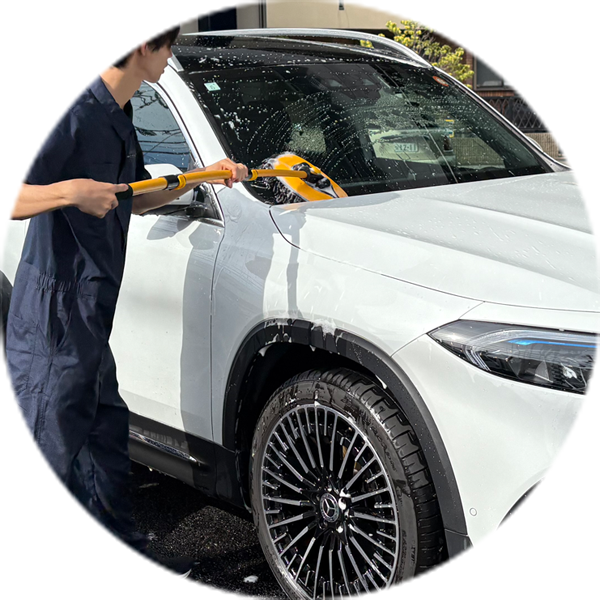 純水を使用した手洗い洗車で、愛車のボディをやさしく、丁寧に洗い上げます。